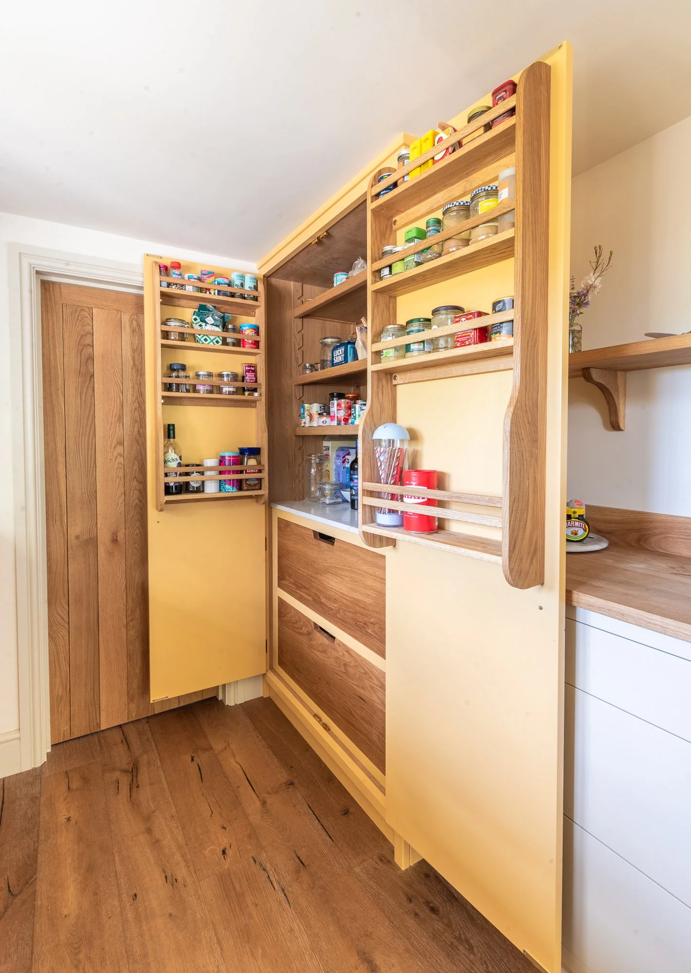 “The kitchen has become the heart of our home, which is what we wanted. It manages to be both large and cosy at the same time. We love the colours, and the suggestions for two off-whites with the yellow by Martyna are brilliant. Finally, the craftsmanship is amazing - friends even comment on the beautifully well-made cabinetry. It was fascinating to watch it being made and installed, and it is a joy to use the kitchen every day.”
