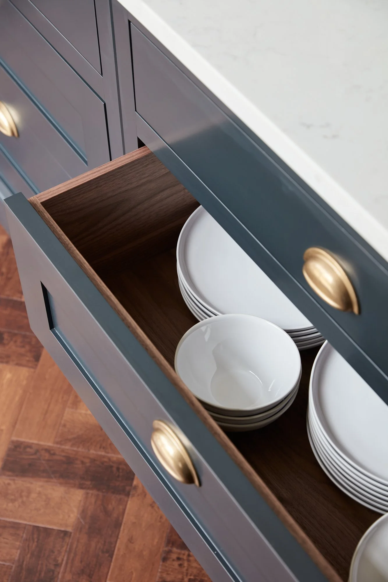 “After seeing their beautiful kitchens on Insta before we had even moved, Herringbone became my dream company to work with. After deciding we would start our work in autumn 2021, we went to see Herringbone in Canterbury the previous April. We were really impressed from the off. We liked the whole ethos of the company and their commitment to their staff, as well as the stunning cabinetry.