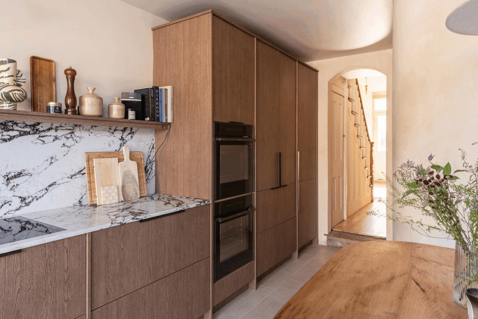 You’ll notice this is a bit different from a normal Herringbone House kitchen. In doing his best friends kitchen, David designed a new kitchen range- one that can cleverly be made quicker and easier than some of our more traditional shaker ranges, but that is just as beautiful and works well in modern spaces. This bespoke cabinetry is now called the Shoreditch range and available with generally a shorter lead time, just speak to a Designer.