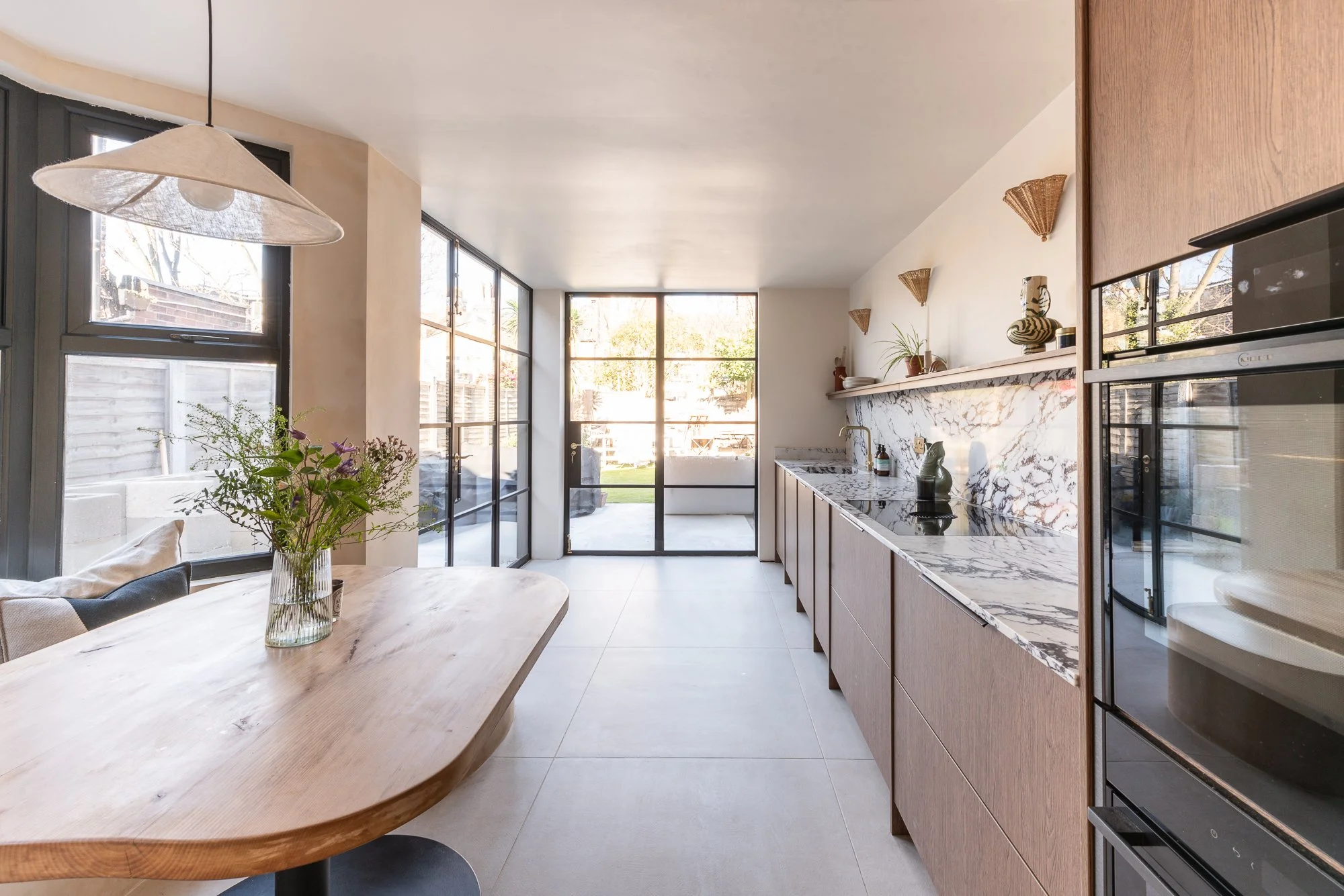 “The space has changed how we live as a family. We spend all of our time here, be that as a family, meal times or when we have people over it. Now the weather has improved it's so nice with the light coming through and when the doors are open you get a outside / inside feel.”