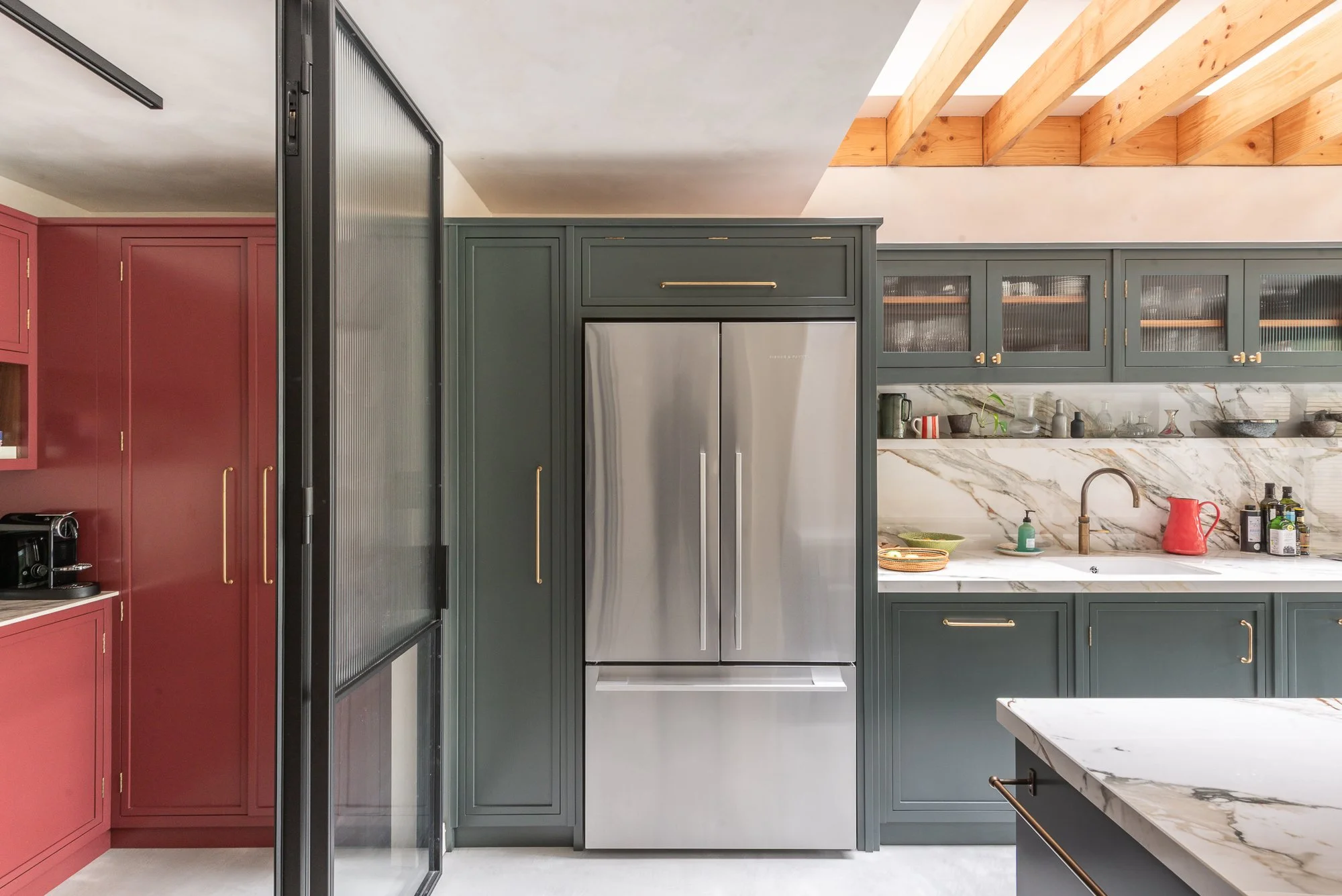 The pantry area was a particular challenge. “We considered closing it off for more storage, but that would have meant narrowing the space and losing that openness. In the end, we added wall-mounted cupboards and used a large corner unit, which gave us all the storage we needed and we got to keep the fluted glass doors, which I absolutely love.”