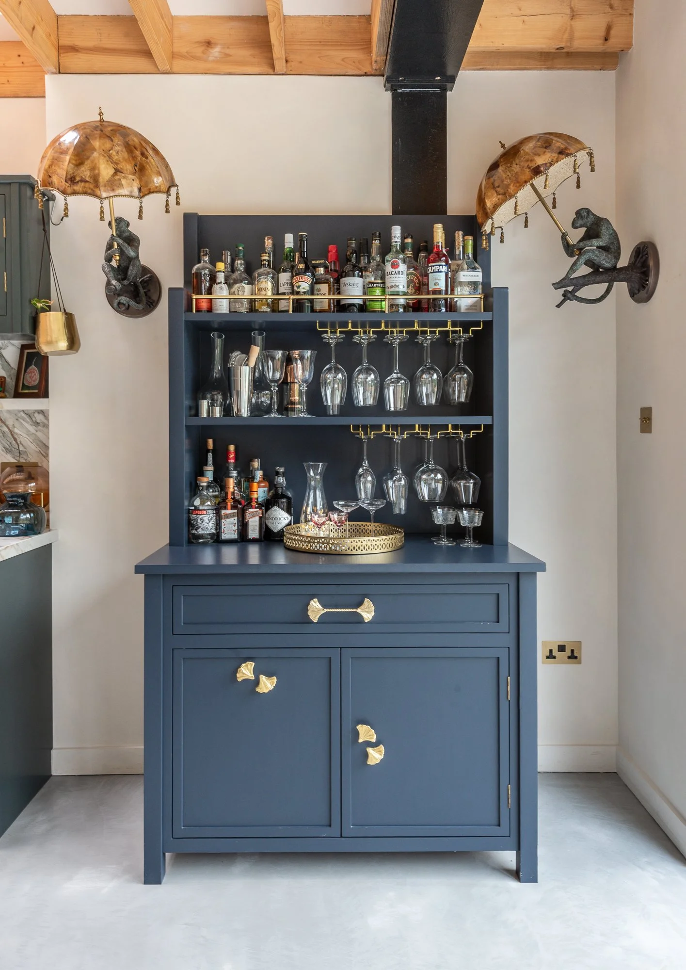 Their solution was to move the utility room into the basement and combine the kitchen and former utility into one open-plan space. “It became an obvious choice once we imagined how we wanted to live and entertain in the future,” she says. “That’s also when we started thinking about including a bar cabinet, we wanted the space to feel like us.”